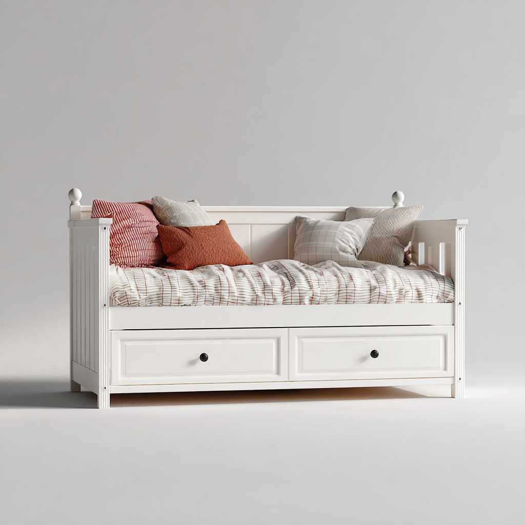 Divano letto legno 200x90x85 cm - bianco - per camera da letto - design moderno