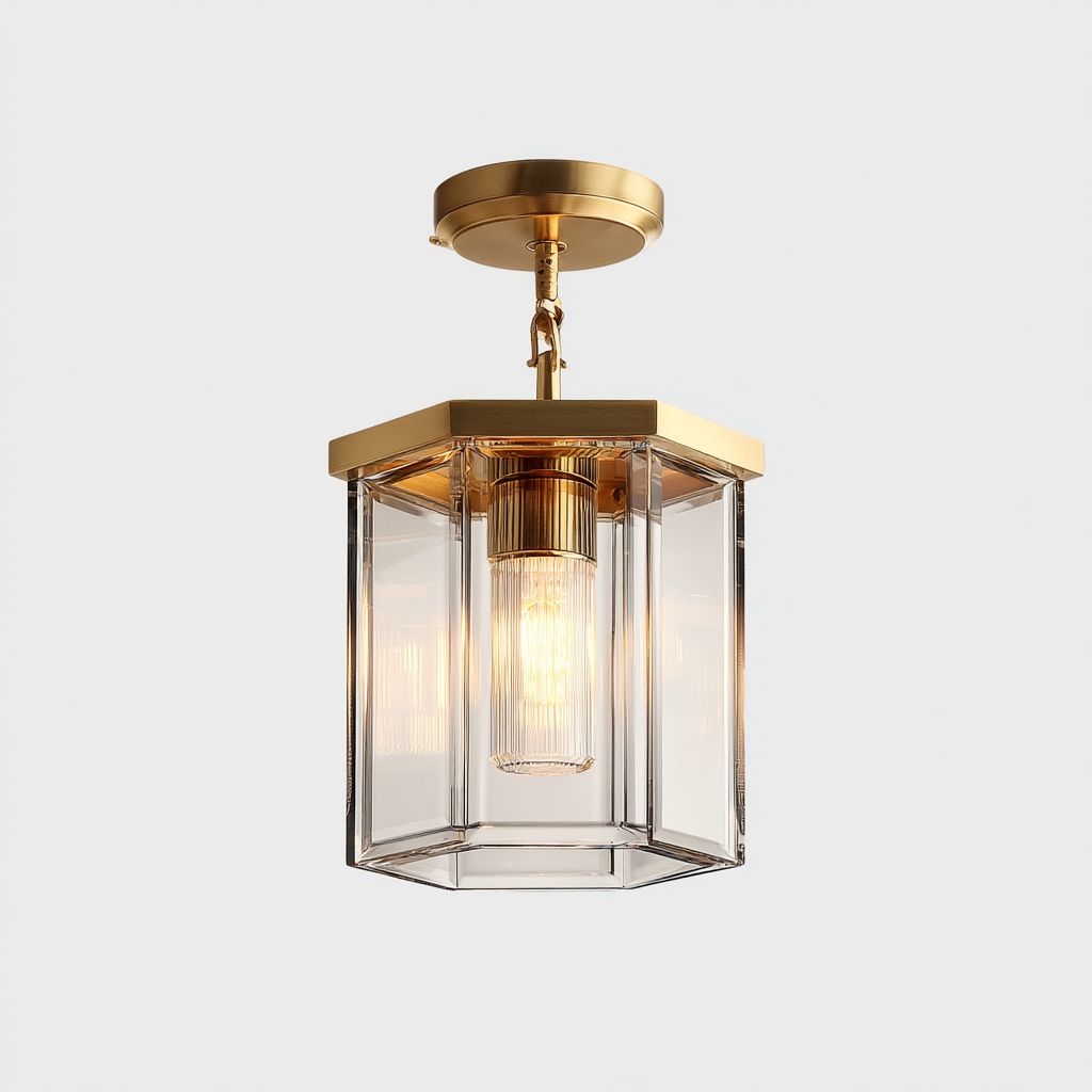 Lampada da soffitto in metallo e vetro 22x22x30 cm - oro - stile moderno