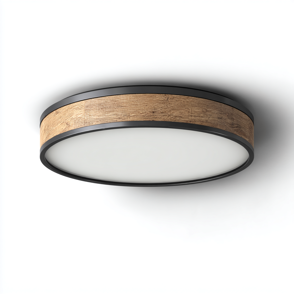 Lampada da soffitto 40x40x8 cm - nero-legno-bianco - per soggiorno - design moderno