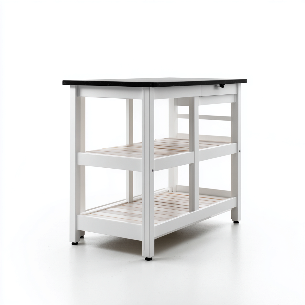 Isola da cucina - struttura in legno con superficie in nero - 100x55x90 cm - bianco-nero - design funzionale