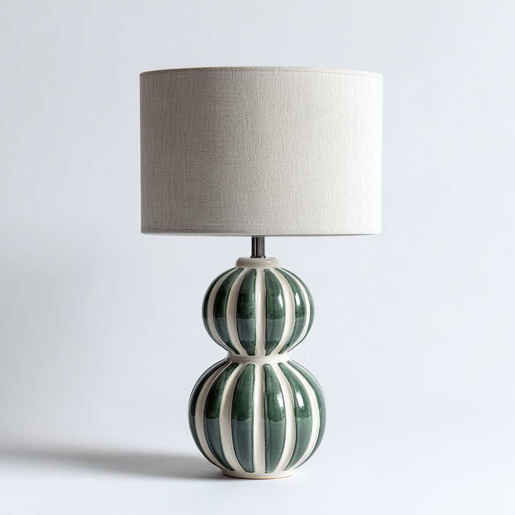 Lampada da tavolo - base in ceramica decorativa e paralume in tessuto - 28x28x50 cm - verde-avorio - design classico
