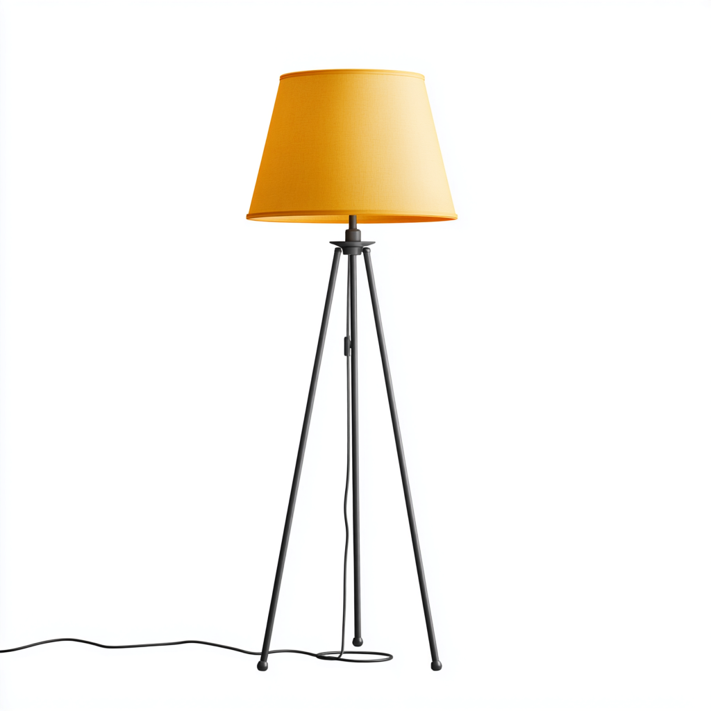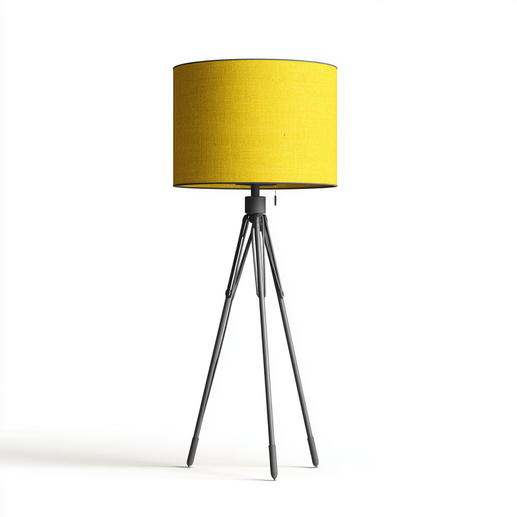 Lampada da terra - struttura in metallo con paralume in tessuto - 35x35x160 cm - nero-giallo - design moderno