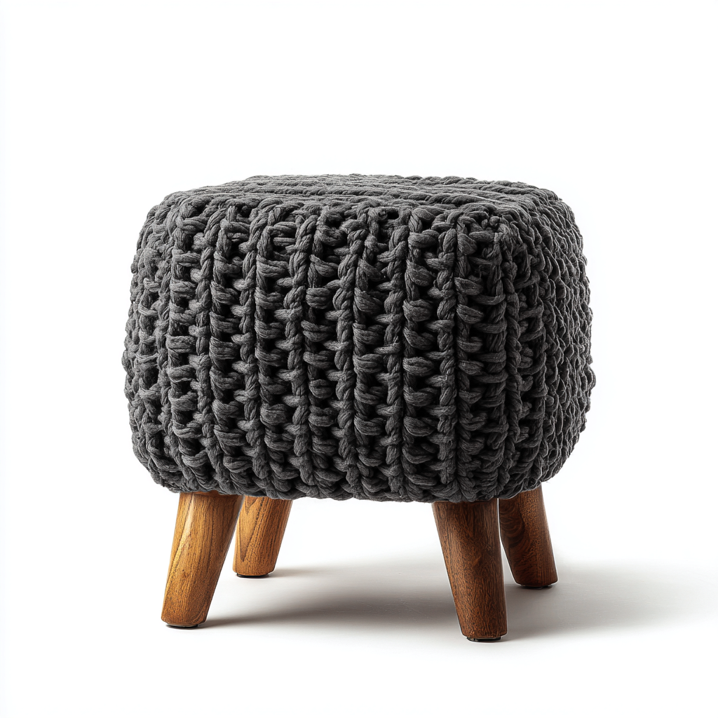 Poggiapiedi in maglia intrecciata 32x32x36 cm - grigio scuro-legno naturale - stile moderno