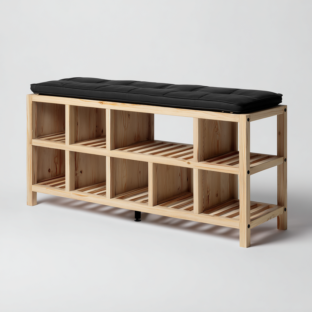 Scarpiera - legno naturale con cuscino imbottito - 100x32x48 cm - nero-legno - stile moderno