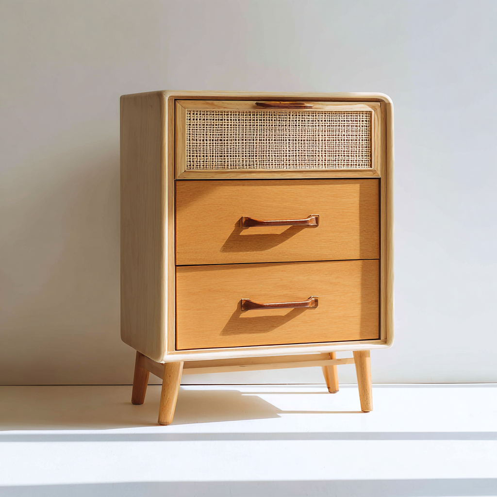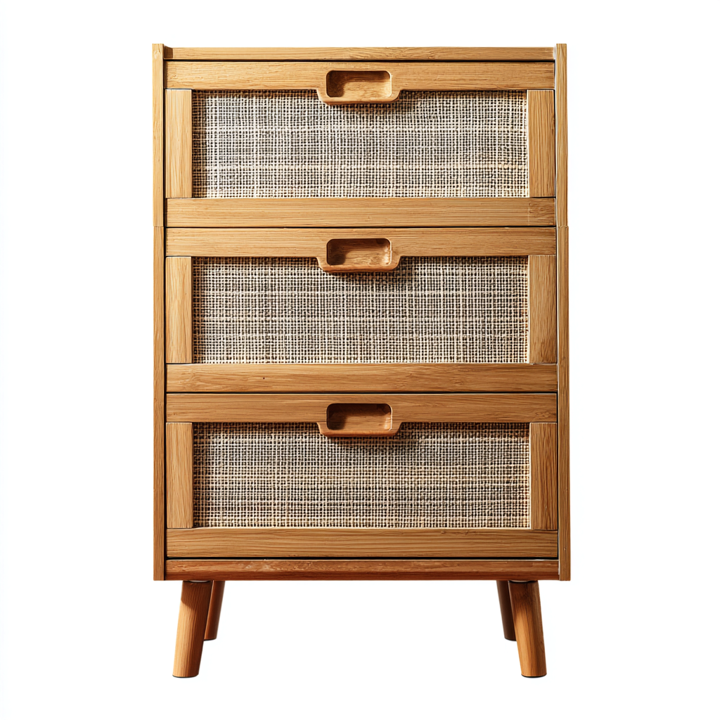 Scarpiera in legno e rattan con cassetti 45x35x70 cm - naturale - design moderno
