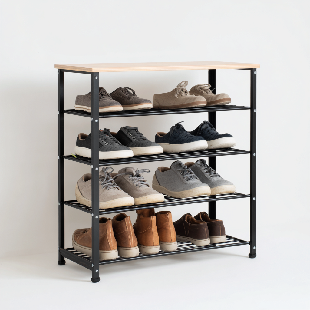 Scarpiera - metallo e piano in legno - 70x28x80 cm - nero-naturale - stile moderno