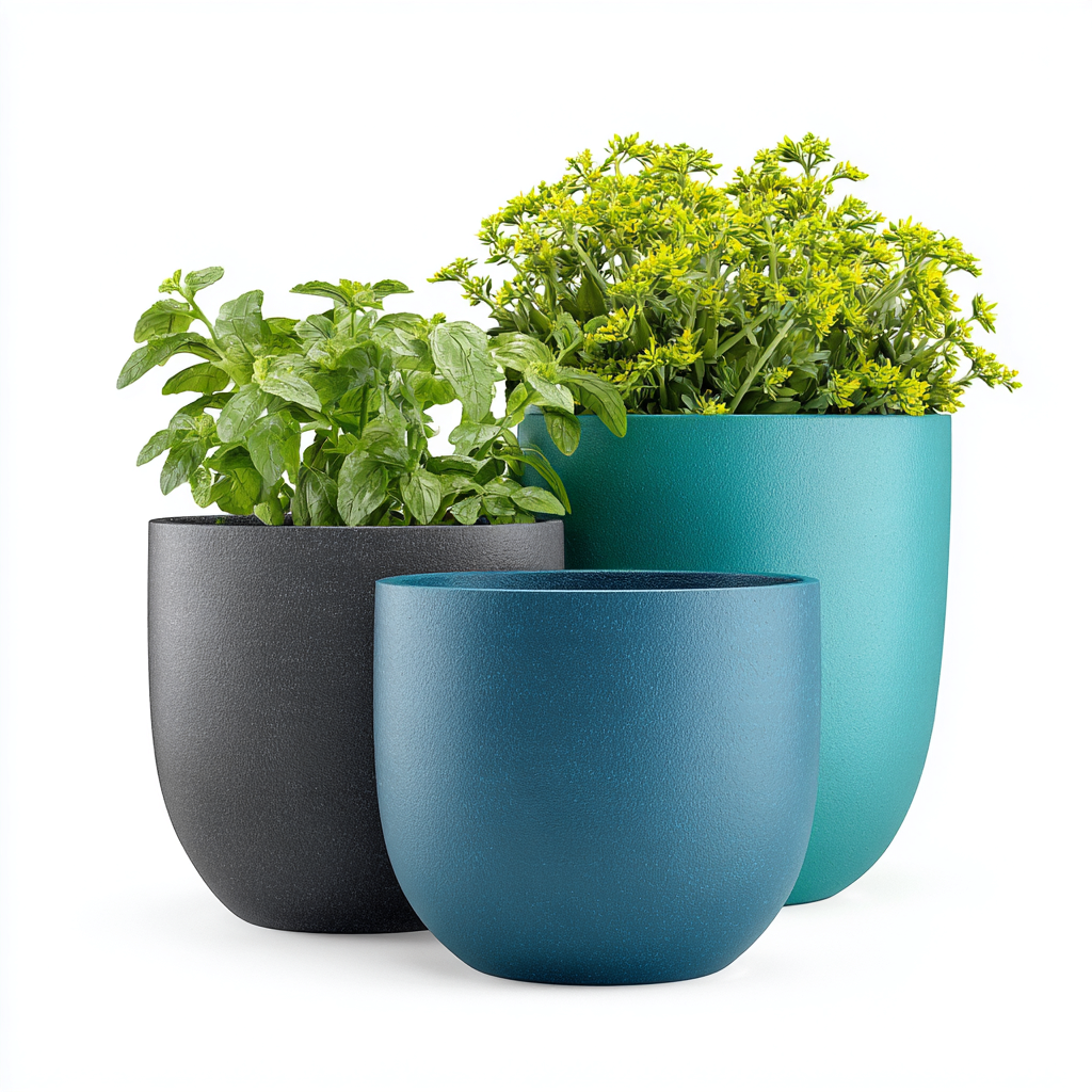 Vasi e supporti per piante - set di 3 vasi in resina - 18x18x17 cm - 18x18x17 cm - 18x18x17 cm - grigio scuro-verde-blu - design moderno