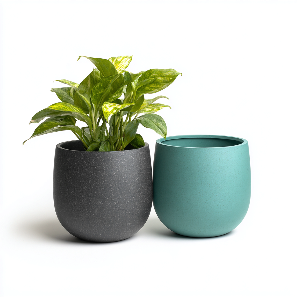 Vasi e supporti per piante in resina 25x25x28 cm - 27x27x30 cm - grigio scuro-verde acqua - design moderno