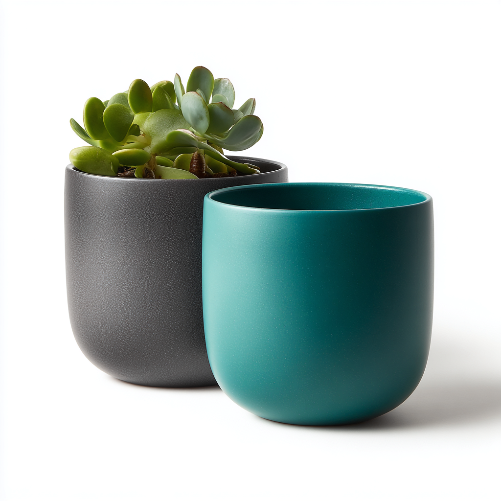 Vasi e supporti per piante plastica 15x15x14 cm-13x13x12 cm - grigio-turchese - per interni - design moderno