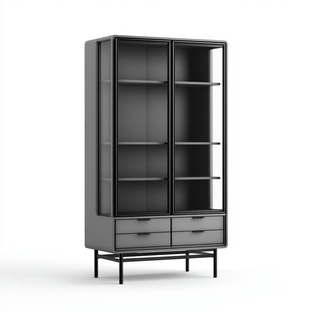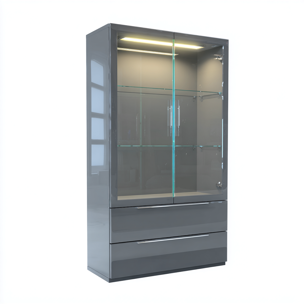 Vetrina - struttura in legno laccato con superfici in vetro - 90x40x190 cm - grigio - design moderno