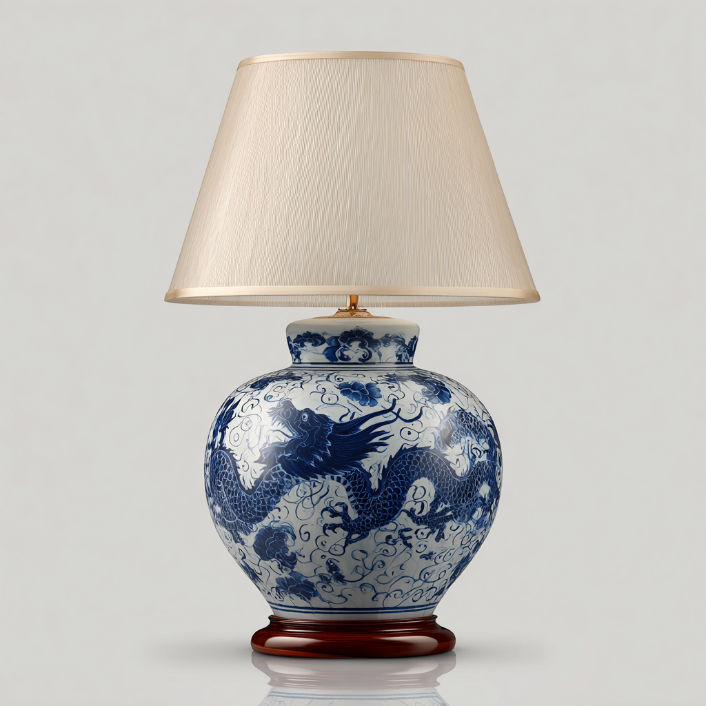 Lampada da tavolo Ceramica-Tessuto 30x30x45 cm bianco-blu-beige - Design classico