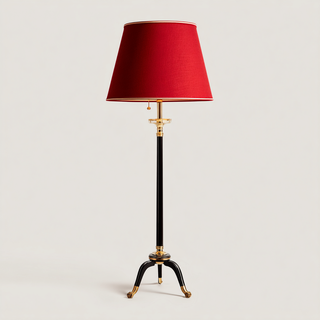 Lampada da terra classica 45x45x155 cm - nero-rosso-oro - struttura elegante con paralume in tessuto
