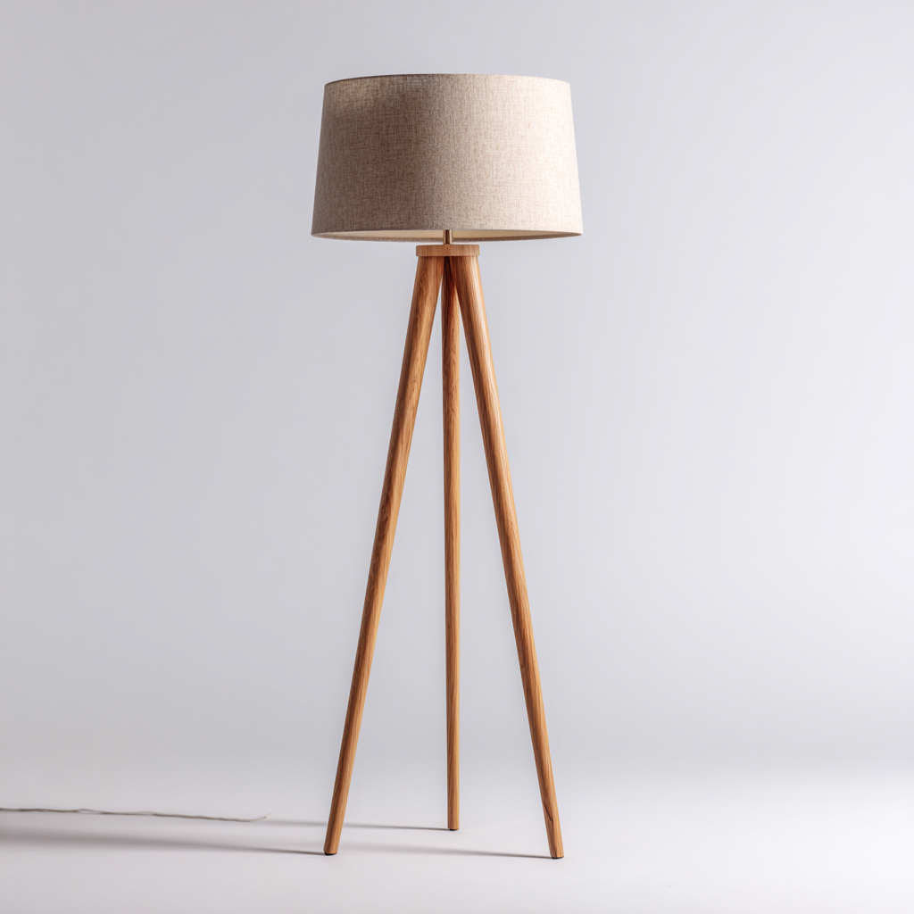 Lampada da terra treppiede in legno con paralume tessile 45x45x160 cm - beige-legno naturale - design naturale