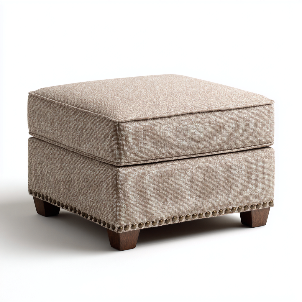Poggiapiedi imbottito in tessuto 55x55x45 cm - beige-legno - design classico