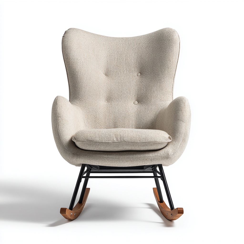 Sedia a dondolo in tessuto 78x92x102 cm - beige-nero-legno naturale - design moderno