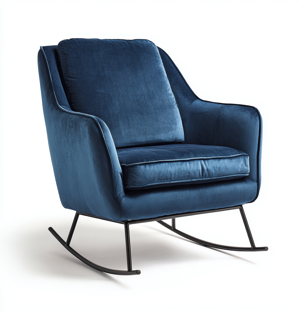 Sedia a dondolo in velluto 80x75x90 cm - blu-nero - design moderno