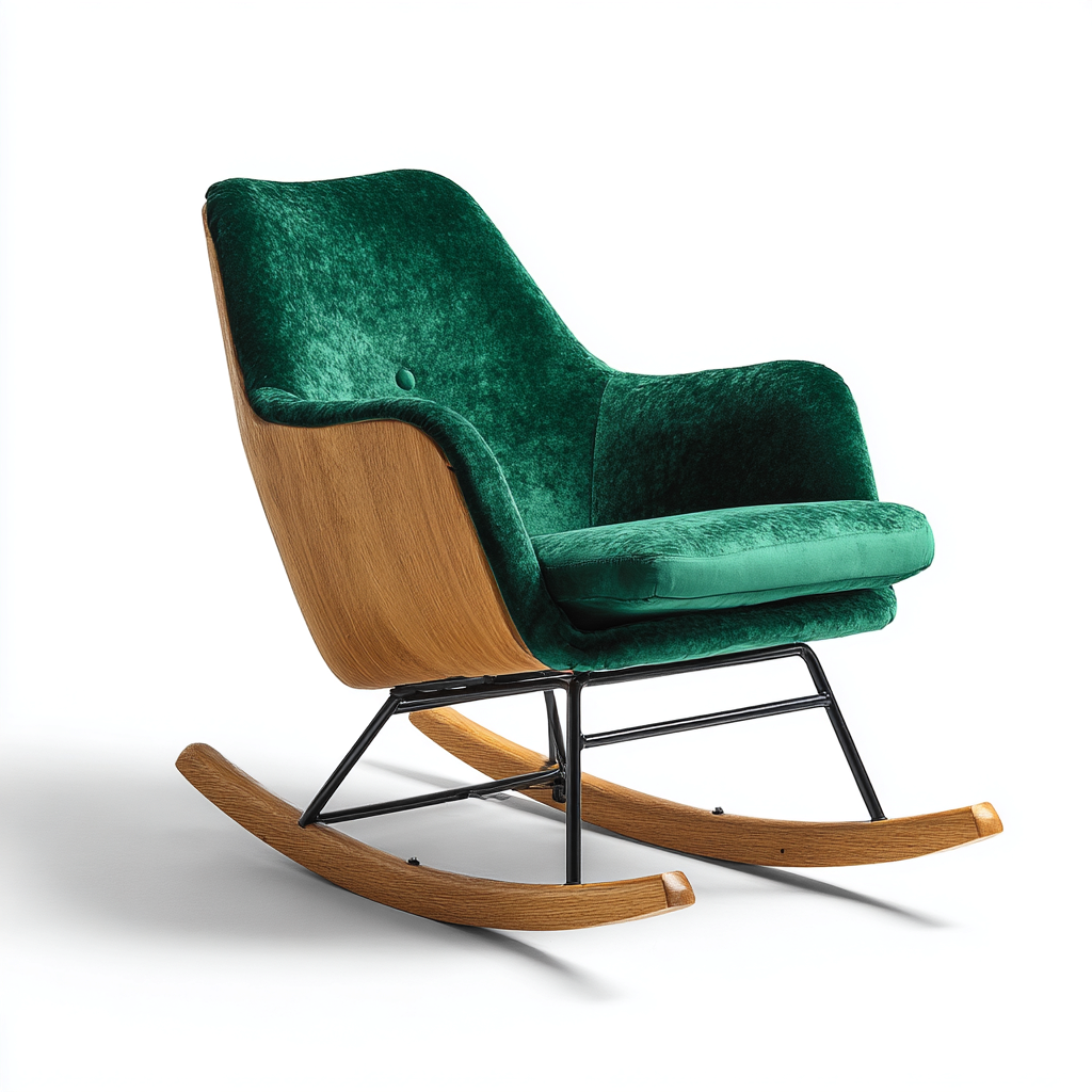 Sedia a dondolo in velluto e legno curvato 76x90x96 cm - verde-legno naturale-nero - design moderno