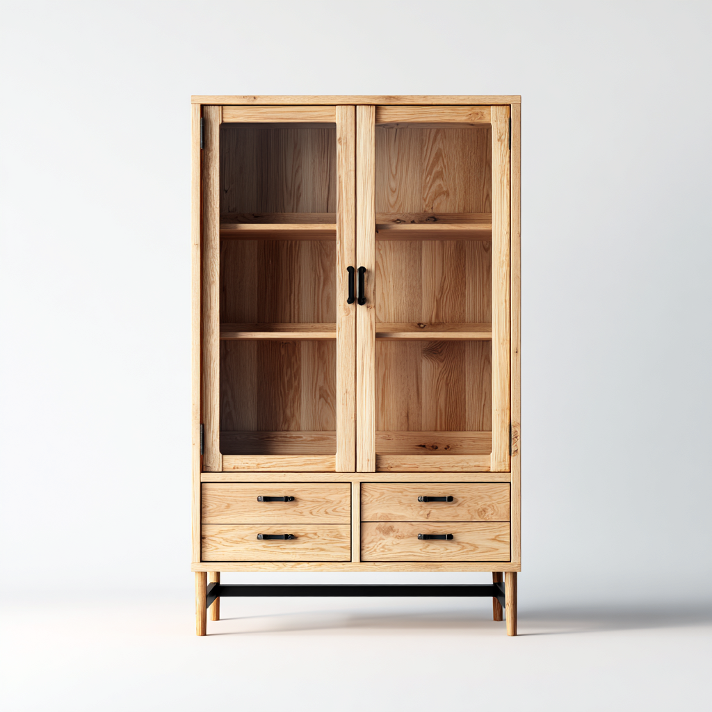 Vetrina in legno e vetro 90x40x165 cm - legno naturale - stile moderno