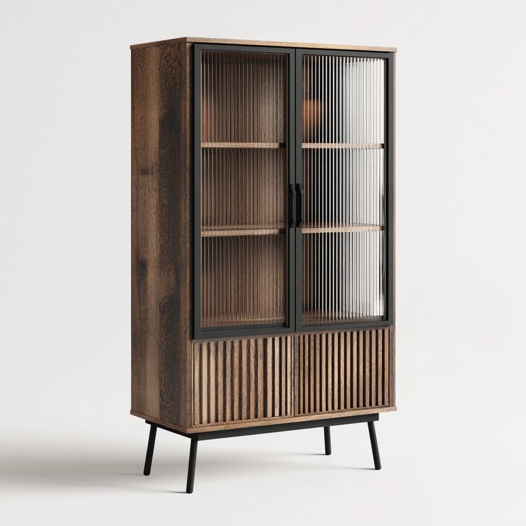 Vetrina Legno-Vetro 85x40x165 cm marrone-nero - Stile moderno